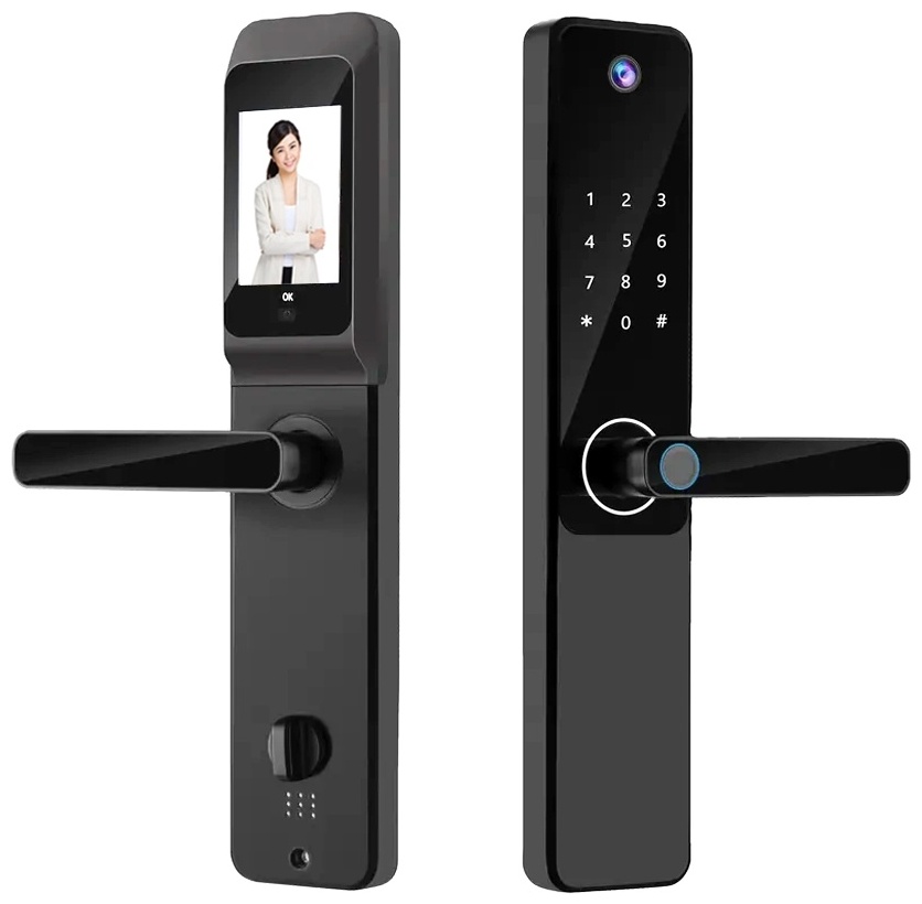 Функции: сканер отпечатка пальца, ,автоматическая защелка, ,автоматическое запирание, ,встроенная сигнализация, ,блокировка от детей, ,звуковой сигнал, ,видеокамера
